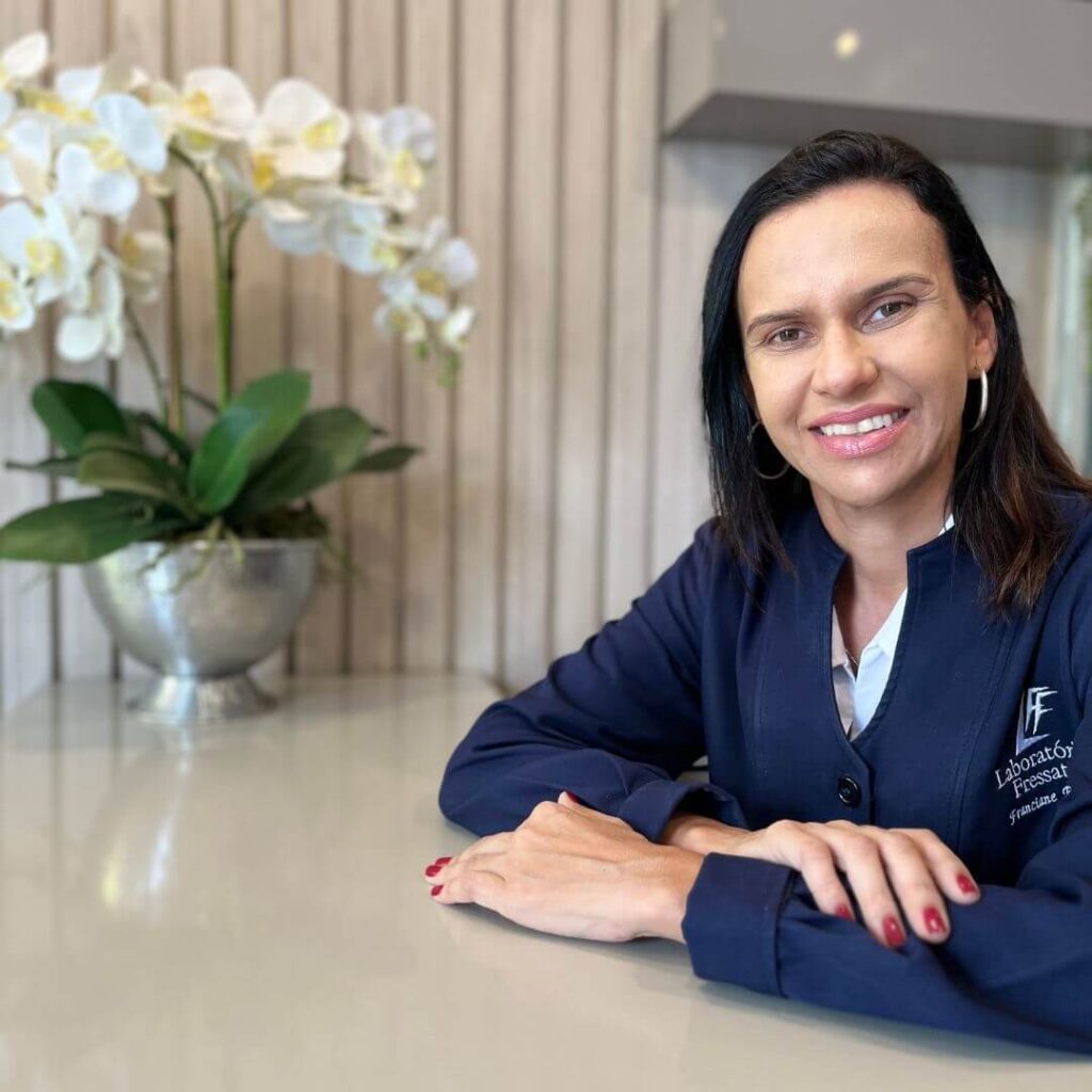 Também graduada pela Escola de Farmácia e Odontologia de Alfenas (EFOA), a Franciane Barros é farmacêutica desde 1997. Possui sólida vivência em análises clínicas e contribui para a formação de profissionais competentes da região, dando aulas para Graduação no Grupo Unis, em Varginha. Atua no Laboratório Fressato como Responsável e Supervisora Técnica da unidade Elói Mendes, e está presente em todas as etapas dos exames, desde coletas domiciliares e execução das análises até a orientação e aconselhamento farmacêutico.