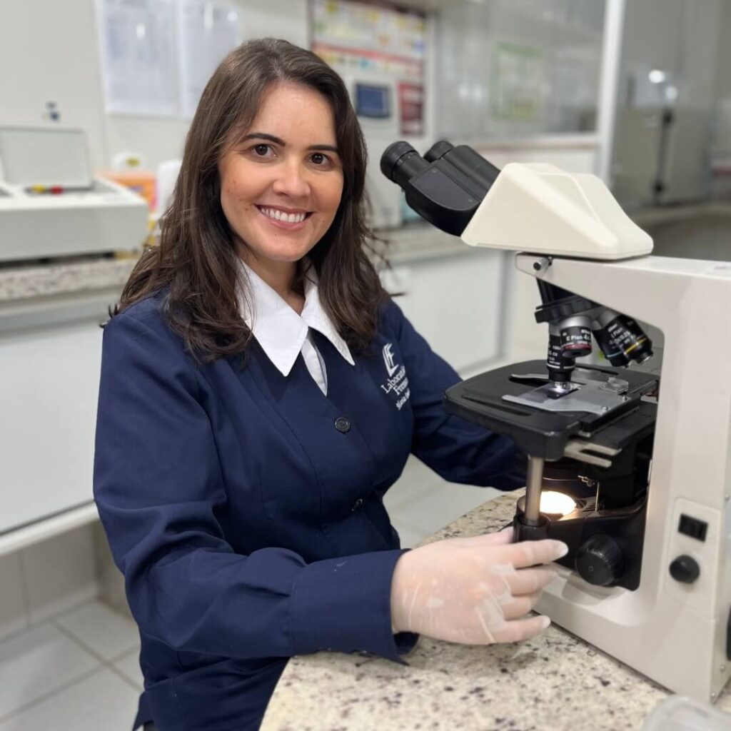 Nossa Responsável Técnica da unidade de Paraguaçu é Farmacêutica pela Universidade Federal de Minas Gerais (UFMG), possui experiência em Controle e Garantia da Qualidade em grandes indústrias farmacêuticas e é quem garante o cumprimento dos requisitos regulatórios e da LGPD, realiza os treinamentos internos e é a alma da Garantia da Qualidade. Está presente em todas as etapas dos exames, desde coletas domiciliares e empresariais, execução das análises até a orientação e aconselhamento farmacêutico.