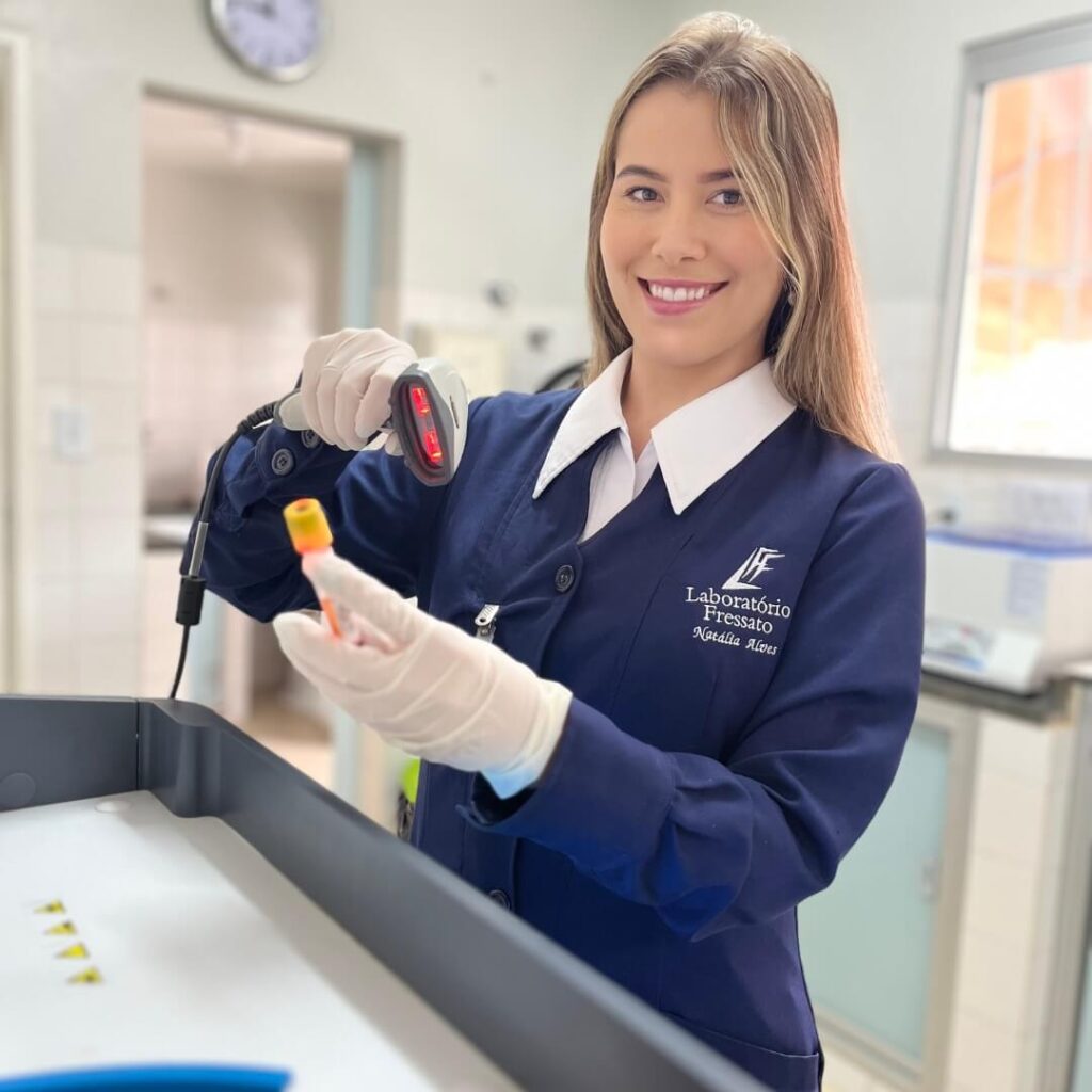 A Natalia é graduada em Biomedicina pelo Grupo Unis, e é responsável por executar os exames laboratoriais com excelência, auxiliar na implementação de melhorias contínuas na área técnica, verificar a necessidade de reposição de estoque de reagentes e insumos, além de zelar pela segurança dos nossos pacientes. Com sua experiência anterior no Banco de Sangue de Varginha, é chamada de “Mãos de fada” ao coletar sangue de adultos e crianças com muita destreza.